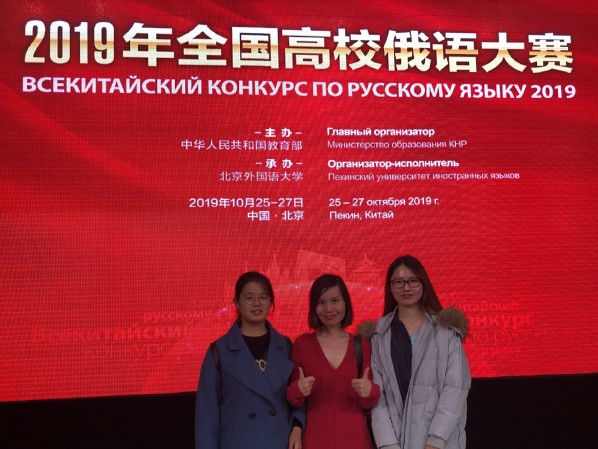 俄语系十分重视本次比赛。赛前邵鹏洁老师对两位学生进行了长期的悉心辅导:讲解词汇语法知识、督促国情学习、敲定演讲稿、演讲演练、服装指导甚至后勤工作等。俄语系师生通过本次比赛积攒了宝贵的大赛经验,加强了与其他院校的交流,也进一步认识到自身的优势与不足。在全体师生的共同努力下,俄语系将勇于创新,不断进取,力争提升教师教学水平和学生综合素质,为国家培养优秀俄语人才。