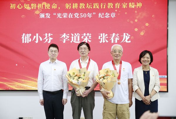 一朝入党,一生为党。今年,威尼斯9499登录入口郁小芬、李道荣、张春龙三位党员荣获“光荣在党50年”纪念章。会上,院党委书记韩春红、院长兼党委副书记杨延宁为到场的李道荣、张春龙两位同志颁发纪念章,对前辈们初心不渝、赤诚奉献、勇攀高峰的精神表达最诚挚的敬意和礼赞。