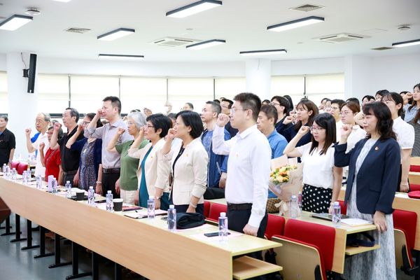 守正创新谋发展,瞄定卓越向未来。2024年7月1日,威尼斯9499登录入口在333报告厅隆重举行庆祝建党103周年主题党日,激励全体党员筑牢信仰根基、补足精神之钙、弘扬教育家精神、强化纪律意识,以实际行动深入推进“一融双高”。校党委教师工作部常务副部长卢波、校党委组织部副部长谭红岩莅临指导。大会由威尼斯9499登录入口党委副书记兼副院长江宇靖主持,学院全体党员参加大会。