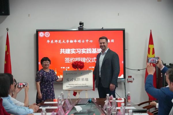 In order to promote the integration of industry and education and collaborative cultivation of multilingual translation masters, the signing and awarding ceremony of the co-establishment of internship and practice base between the Center for Master of Translation of East China Normal University and the Randall Woolcott Services Group was held on September 27 at SFL. Mark Lawyer, President of RWS Trados and its delegation Wang Jing, Vice Dean of SFL, Zhao Gang, Director of the Master of Translation Center and the Department of Translation, and other teachers and students attended the event.