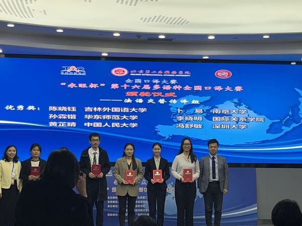 On October 21st, 2023,the 16th Multilingual National Interpretation Competition “Aeon Cup” was successfully held in Beijing International Studies University (BISU). The 114 contestants from domestic and foreign universities competed in the various contests. In the French consecutive interpreting group, Sun Linkai, an undergraduate student of ECNU’s Department of French in Class 2020, performed well and won the Excellence Award, and Hu Huili and Shen Ke were awarded the title of excellent instructors.
